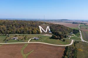 In Platteville, Wisconsin sits the largest letter M to appear on record. Motivated by a competitive spirit, students at the Wisconsin Mining School set out to best the Colorado School of Mines by having an M nearly twice as large as theirs. Now the Platte Mound boasts their wonder forevermore. Nearby UW-Platteville's chapter of the Society of Automotive Engineers maintains it.